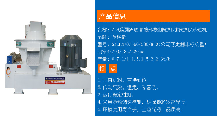 立式環模木屑顆粒機由顆粒機機座、大型減速機箱、軸承室、進料罩、出料部分、電機、壓輥總成、模具等構成。