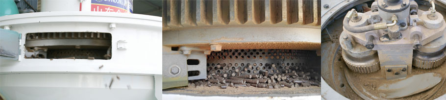 這zhe個ge問wen題ti得de看kan設she備bei的de所suo用yong之zhi處chu,是shi用yong來lai做zuo什shen麼me原yuan料liao的de,都dou是shi顆ke粒li機ji,都dou是shi一yi樣yang的de結jie構gou,通tong過guo壓ya輪lun擠ji壓ya,然ran後hou通tong過guo模mo具ju的de孔kong徑jing出chu來lai顆ke粒li。平ping模mo是shi由you上shang往wang下xia擠ji壓ya,它ta的de模mo具ju是shi一yi塊kuai平ping板ban,是shi專zhuan門men做zuo有you機ji肥fei或huo是shi小xiao產chan量liang的de飼si料liao,壓ya力li相xiang對dui小xiao,成cheng型xing容rong易yi,操cao作zuo簡jian單dan。如ru果guo要yao是shi做zuo生sheng物wu質zhi顆ke粒li燃ran料liao,那na麼me必bi須xu要yao用yong立li式shi環huan模mo顆粒機,也就是秸稈顆粒機、木屑顆粒機。zhuyaoshiyinweiqijiegouwenti,tebiewending,nengchangshijianzaiwendingdeqiantixiayunxing,dadaonianyusuanchanliang,buhuiyinweijingchangweixiushebeiyingxiangchanliang。huanmodezhilishishimifengde,zaiyazhiguochengzhong,jumokeliyouyujiyahuichuxiangaowen,zaimifengdezhilishizhongyuelaiyuegao,gaowenxiadaozhihuanmojingchangsunhuaizhoucheng,zhouchengshijiqidehexin,huanzhouchenghuizengjiachengben,jianshaochanliang,langfeishengchanshijian。womendekehufanying,youxiehuanmodeyalunzhouchengshaoweihaode3-5天(tian)換(huan)一(yi)次(ci)。我(wo)們(men)的(de)秸(jie)稈(gan)顆(ke)粒(li)機(ji)立(li)式(shi)環(huan)模(mo)是(shi)向(xiang)上(shang)敞(chang)口(kou)的(de),易(yi)於(yu)散(san)熱(re),另(ling)外(wai)還(hai)帶(dai)一(yi)套(tao)風(feng)冷(leng)布(bu)袋(dai)除(chu)塵(chen),使(shi)顆(ke)粒(li)機(ji)在(zai)衡(heng)溫(wen)下(xia)運(yun)行(xing),加(jia)上(shang)壓(ya)輪(lun)體(ti)積(ji)大(da),每(mei)個(ge)壓(ya)輪(lun)裏(li)有(you)3盤軸承,自動加油。所以我們的壓輪每年換3-5ci,zhejiushichaju。youyuhuanmodemojushizaijiqidebianhengfangzhe,dangjinliaobujunyun,wuliaozaizhonglidezuoyongxiahuijizandaomojudexiamian,huichanshengzhendong,sunhuaizhoucheng。lishihuanmobucunzai,youyalunxuanzhuanfenliao,buhuichanshengwuliaopianzhong,buhuichanshengzhendong,jiashangwomendeshebeiquantaoxuanzhuanbuweidoujingguojingmidedongpingheng,jiashangzishendezhongliang,zaibanmiyiwaijiubuhuiganjiaodaozhendong,zhiliangkexiangerzhi。