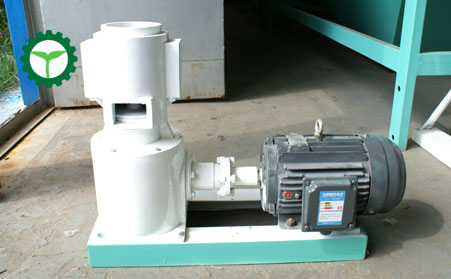 牧mu草cao飼si料liao顆ke粒li機ji以yi機ji械xie固gu有you的de運yun動dong為wei基ji礎chu,電dian機ji作zuo動dong力li,帶dai動dong齒chi輪lun傳chuan遞di至zhi主zhu軸zhou,在zai磨mo擦ca力li的de作zuo用yong下xia使shi壓ya輥gun自zi轉zhuan,讓rang壓ya輥gun與yu壓ya模mo之zhi間jian產chan生sheng相xiang應ying的de磨mo擦ca溫wen度du,使shi粉fen狀zhuang物wu料liao通tong過guo塑su化hua,蛋dan白bai脂zhi受shou溫wen變bian性xing,在zai壓ya輪lun的de擠ji壓ya下xia從cong模mo孔kong中zhong擠ji出chu,通tong過guo對dui切qie刀dao的de調tiao整zheng可ke以yi得de到dao需xu要yao的de顆ke粒li長chang度du,再zai經jing甩shuai料liao盤pan將jiang製zhi成cheng的de顆ke粒li經jing出chu料liao口kou送song出chu機ji外wai。