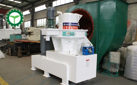 顆粒機采用電機直聯方式運轉,電動機通過齒式聯軸器與減速機軸聯接,經過90°變向,臥式電機傳動立式鑄件空心轉運主軸,主軸再帶動壓輥碾壓模具的內表麵完成壓製過程。顆粒機工作時生物質木屑原料由進料口垂直落入,經過壓輪的旋轉使物料連續均布在模具內腔表麵(壓輥與模具的接觸立麵),在壓輥的碾壓下粉狀物料穿過模具的孔(均布在模具內表麵的孔)。此過程物料受到高壓、高溫的作用,產生物理變化或適當的化學變化(根據物料),促使粉狀物料形成不斷加長的圓柱狀實心體,再由斷刀切斷顆粒,從出料口排出,至此顆粒的壓製過程完成。