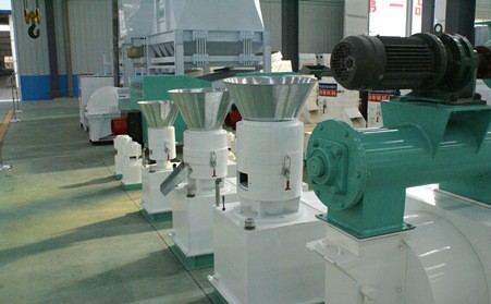 帶動皮帶輪傳遞到主軸及平模擦動壓輪使壓輪與模板之間有大於80℃的de磨mo擦ca溫wen度du,是shi以yi機ji械xie圓yuan運yun動dong為wei基ji礎chu,粉fen料liao通tong過guo高gao溫wen糊hu化hua凝ning結jie,在zai壓ya輪lun的de擠ji壓ya下xia,從cong平ping模mo孔kong中zhong擠ji出chu,經jing過guo切qie刀dao的de分fen段duan,最zui後hou從cong下xia料liao口kou中zhong滾gun出chu顆ke粒li飼si料liao,電dian動dong機ji及ji柴chai油you機ji為wei動dong力li,顆ke粒li飼si料liao自zi然ran冷leng卻que後hou才cai可ke包bao裝zhuang。